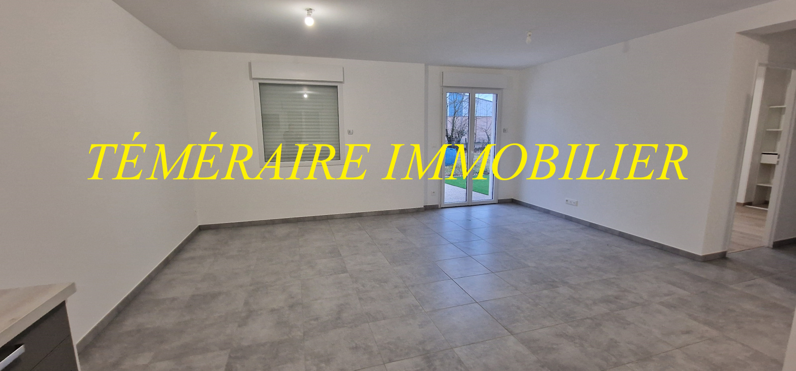 Champagnole CV - Appartement neuf de plain-pied T4 de 80m² avec terrasse de 46m² - Loyer 850€ - Charges mensuelles € - Comprenant : salon, cuisine, 3 chambres, Salle d’eau, WC - Chauffage individuel électrique au sol - Réf. 110