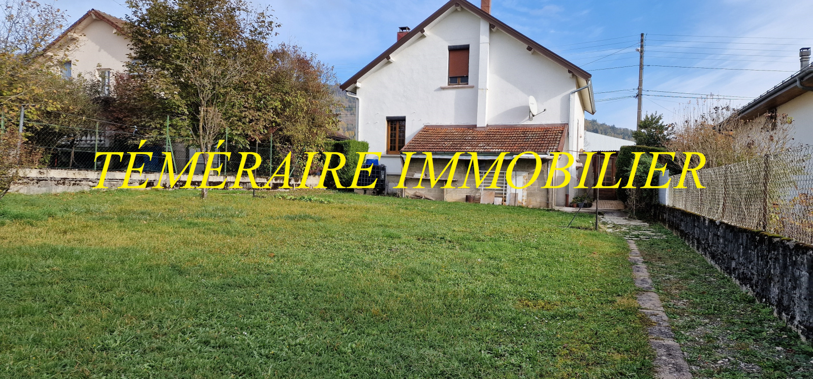 CHAMPAGNOLE - Proche CV - Maison individuelle des années 30 - 103 m² habitables - Au rdc : cuisine, salon séjour, 1 ch, SDE, WC, garage - A l’étage : 2 chs, 2 greniers - Au sous-sol : 2 caves, chaufferie, buanderie - Terrain clos de 697 m² - Réf. 5258