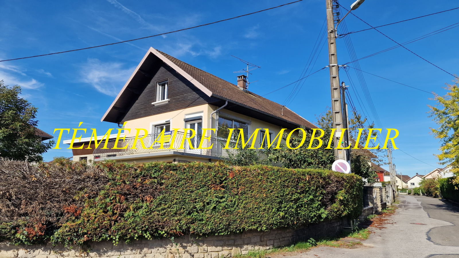 CHAMPAGNOLE - Proche CV - Maison de 198m² + Appartement de 30m² au rdc - Pièce de vie, cuisine meublée équipée, 2 chs, SDB au 1er étage - 2 chs, SDE, WC au 2ème étage - 2 grandes terrasses - 2 garages dont 1 de 90m² - Chaudière à granulés de 2021 - DV de 2022 - Terrain clos 572 m² - Réf. 5323