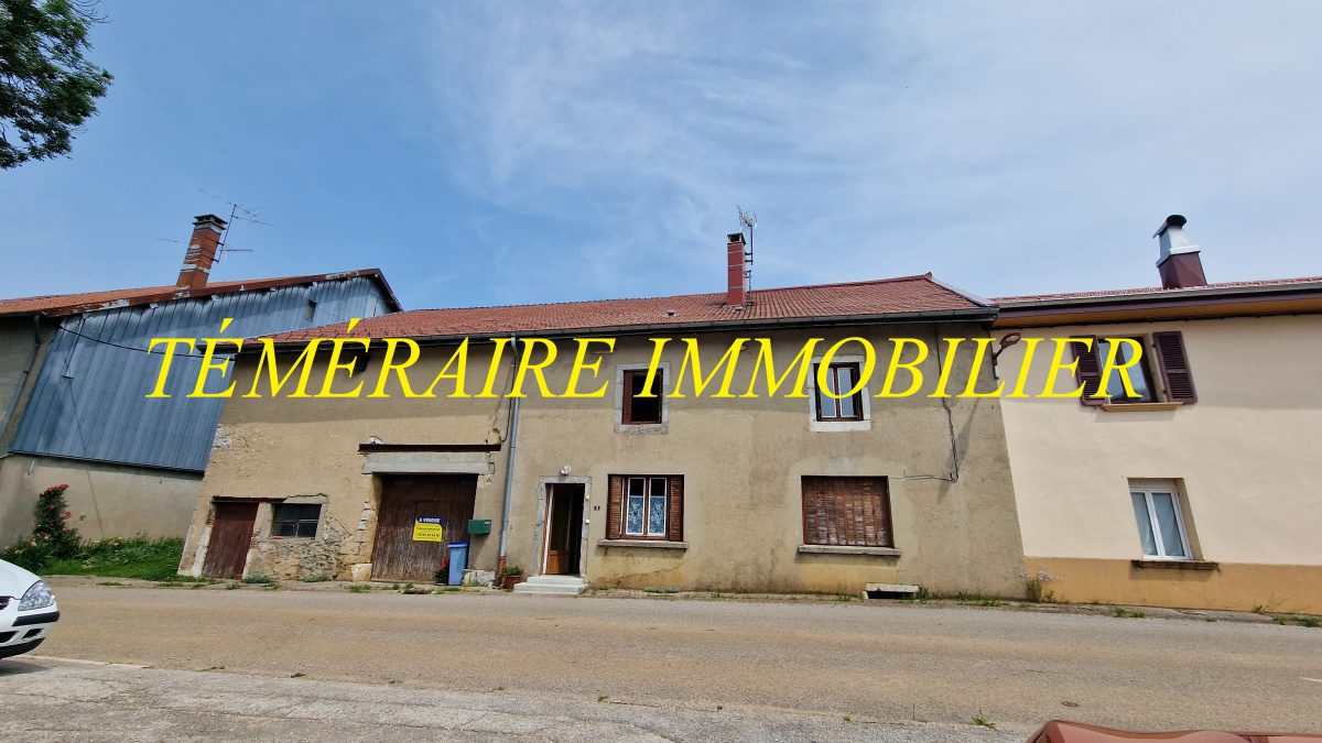 Haut Jura - LES CHALESMES - Ancienne ferme mitoyenne de 146m² hab - Comprenant au rdc : cuisine, séjour, SDE, WC, buanderie, grange de 120 m² ; à l’étage : 3 chs, SDE / WC - Chaudière à granulés avec silo de 2019 - Prévoir travaux intérieurs - Sur 1300m² de terrain + 2ème terrain en face de 590m² - Réf. 5305