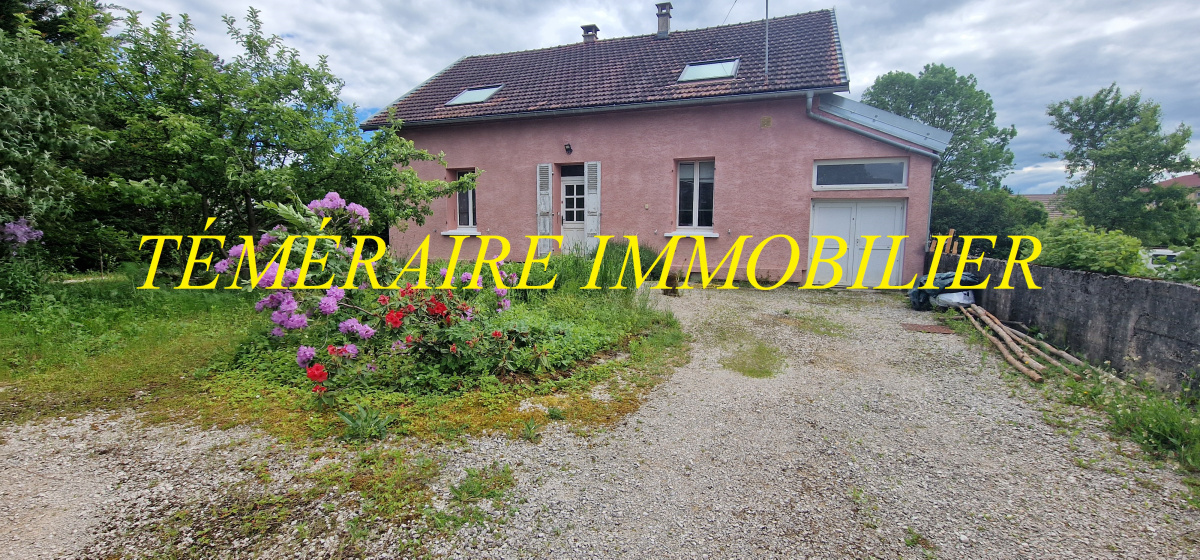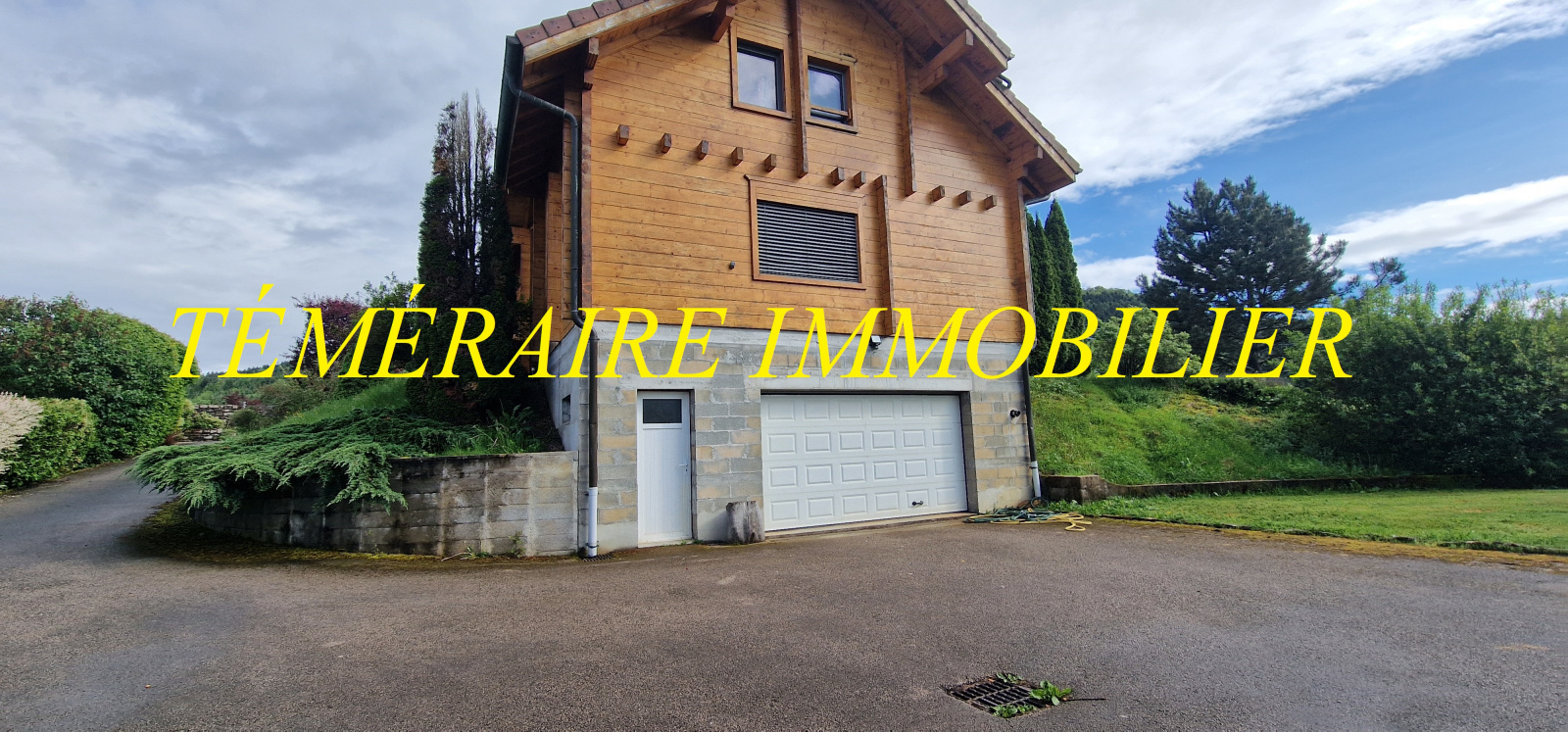Proche Champagnole - Chalet de 161m² hab - Comprenant au RDC : 2 chs, WC, cuisine ouverte sur salon séjour de 55m² avec accès terrasse couverte ; à l’étage : 4chs, WC, SDB, dressing - Garage de 90m² - Cuisine d’été - Possibilité SDB au RDC - Sur terrain de 1673m² - Vue dégagée - Réf. 52
