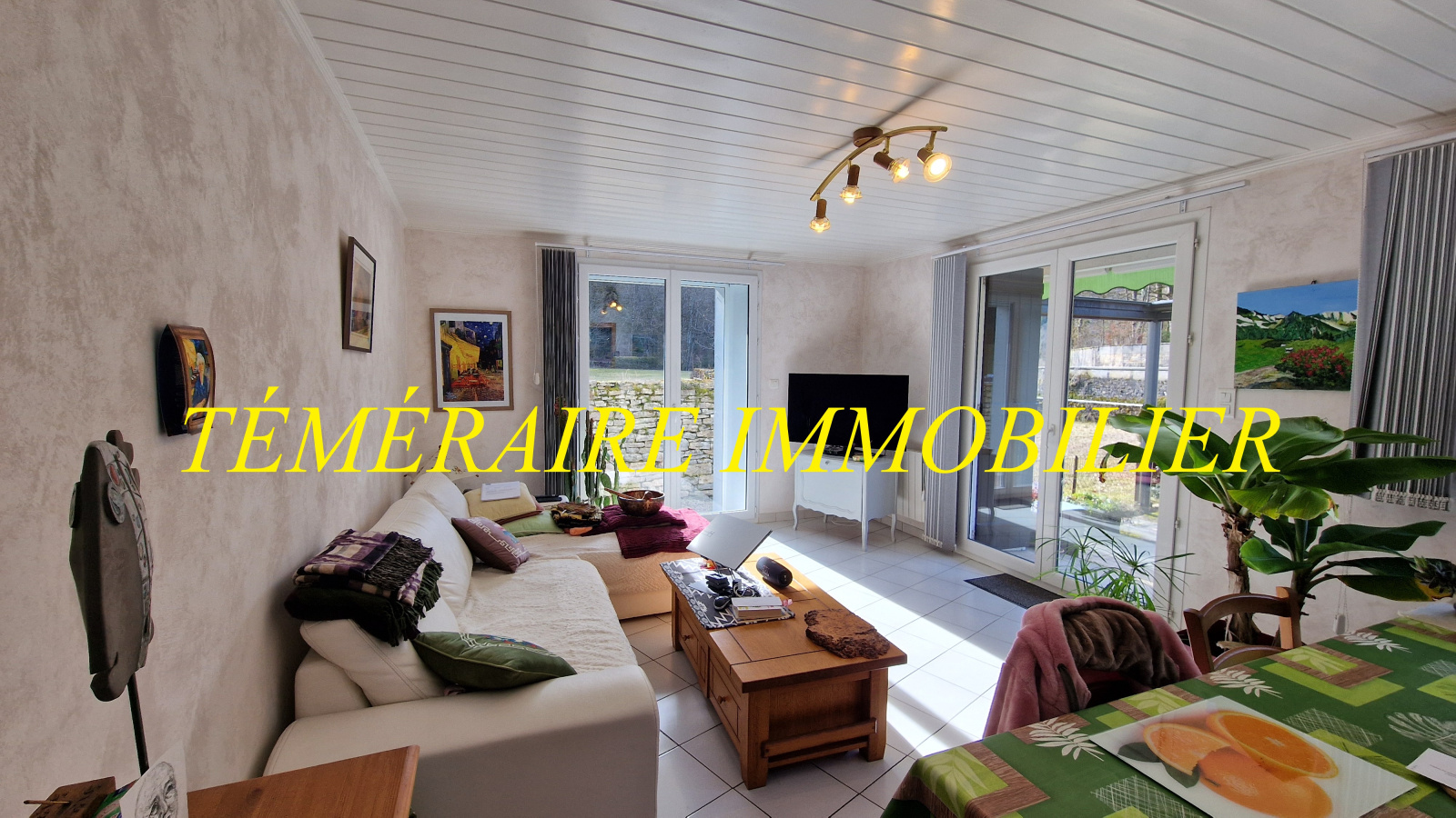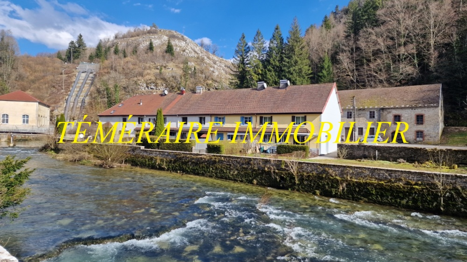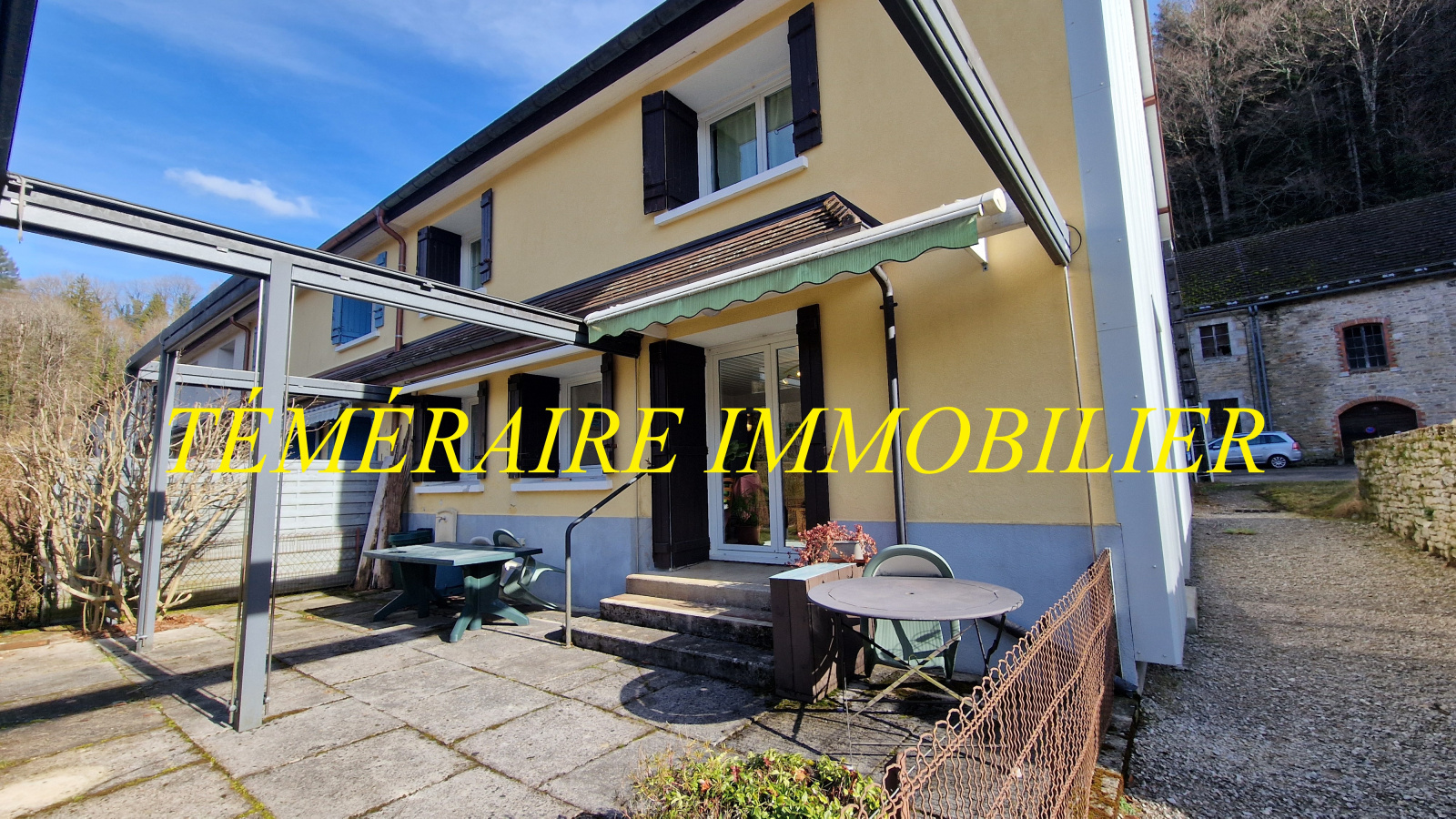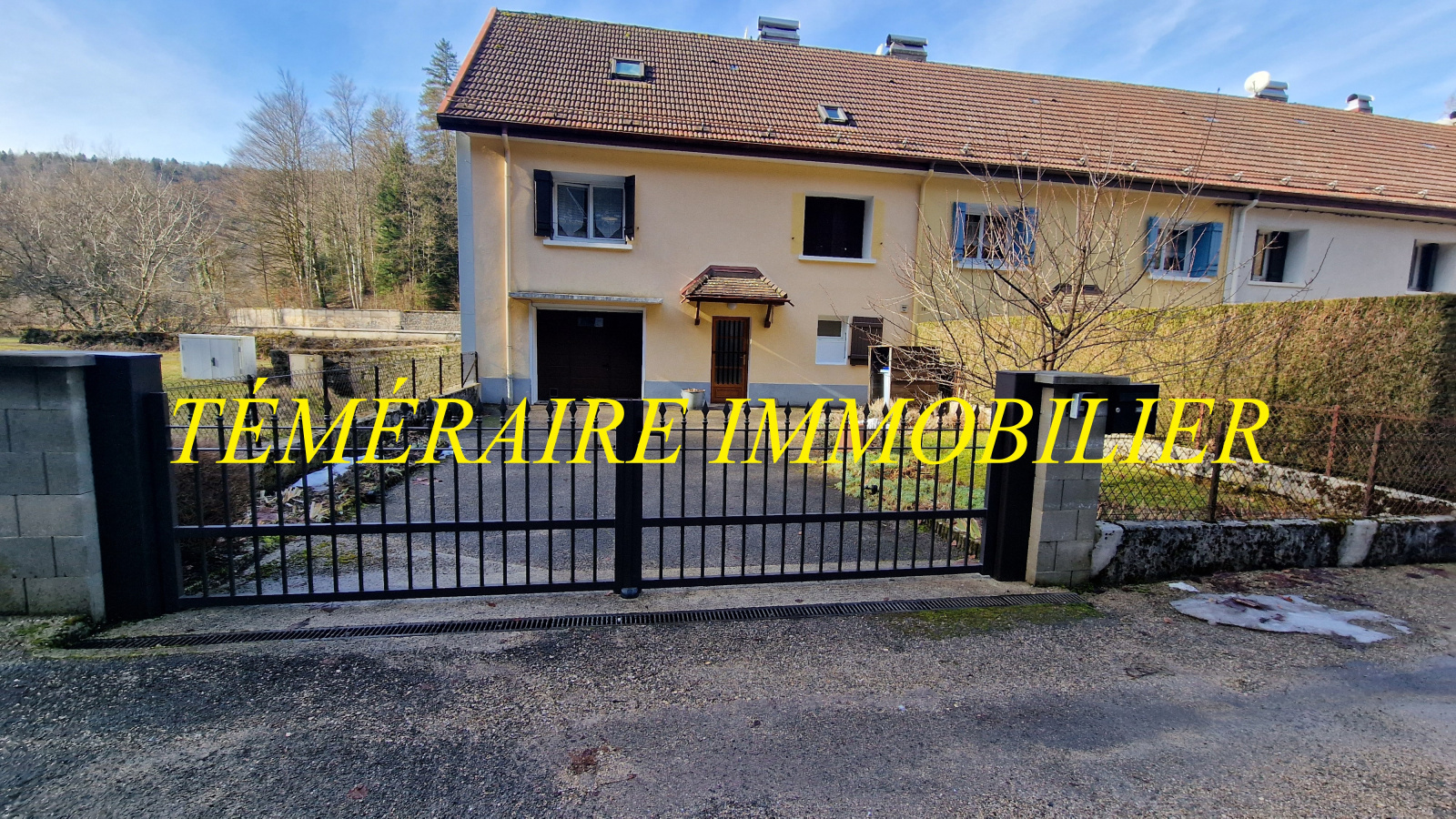 Proche Champagnole (Bourg-de-Sirod) - Les Pertes de l’Ain - Maison mitoyenne de 118 m² habitables - Cuisine ouverte sur séjour - 3 chambres - 2 salles d’eau - Terrain clos de 323 m² avec terrasse et pergola - Double vitrage récent - Poêle à granulés - Aucun travaux à prévoir - Vous serez séduit par son environnement calme - Réf. 5345